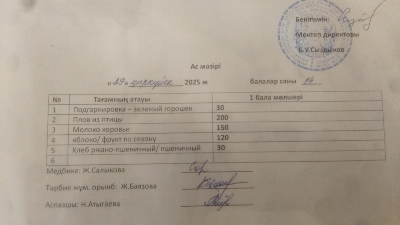 Ас мәзірі 29.09.2025ж