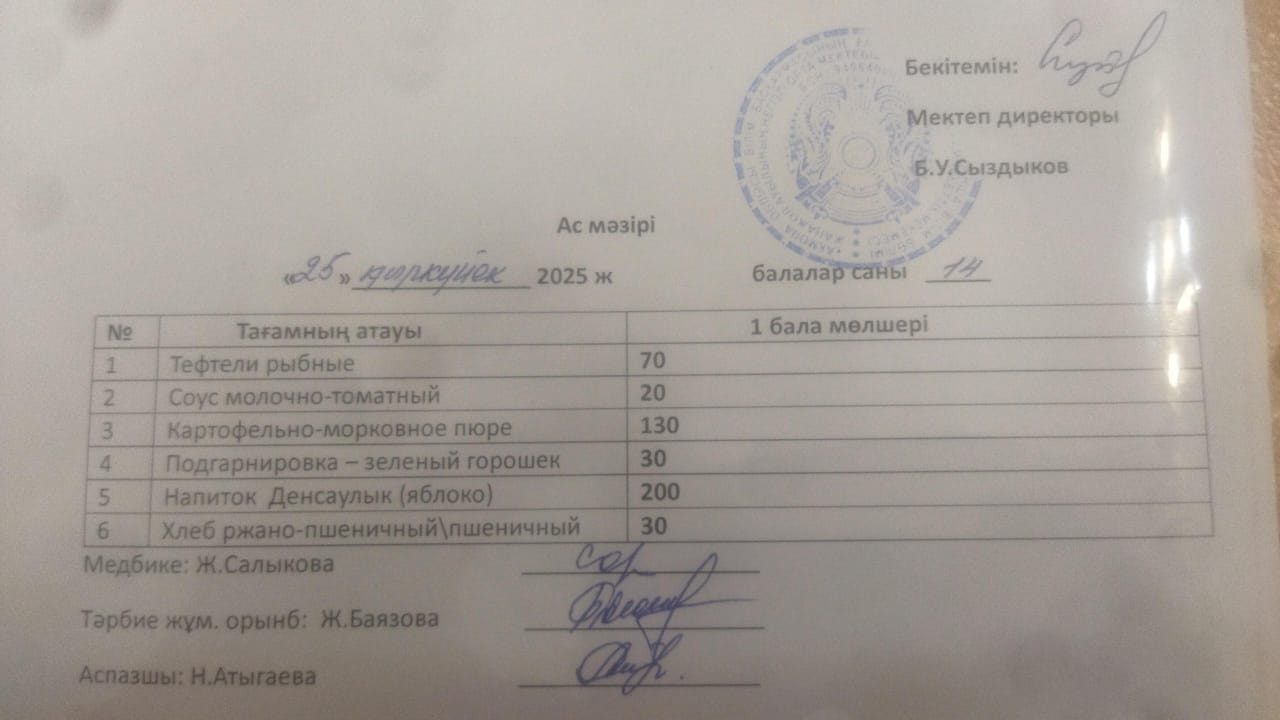 Ас мәзірі 25.09.2025ж
